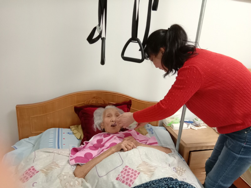 據周元兵講,他另外的五個哥哥姐姐們或是嫂子女婿們,個個對母親照顧有加,樣樣為老人考慮周到,溫暖的家庭氛圍,這也是我的母親長壽的一種秘訣吧。圖為周粉英在照顧母親時的一些畫面。