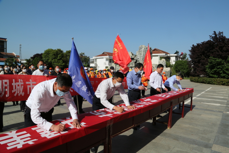黨委書記王信學(xué)在致辭中指出,開展環(huán)境污染整治活動(dòng)是城鎮(zhèn)綠色發(fā)展的需要,是群眾對(duì)美好生活的強(qiáng)烈期盼,更是我們的重大責(zé)任和使命。今天召集大家在這里舉辦“共創(chuàng)文明城市 共建美好家園”個(gè)人簽名承諾志愿服務(wù)活動(dòng),我們必須以堅(jiān)定的決心、高度的擔(dān)當(dāng)、過硬的措施向環(huán)境污染“宣戰(zhàn)”,為持續(xù)改善環(huán)境質(zhì)量,推進(jìn)生態(tài)文明建設(shè)、助推文明城市高質(zhì)創(chuàng)成、打造生態(tài)宜居崗埠,做出積極的貢獻(xiàn)。