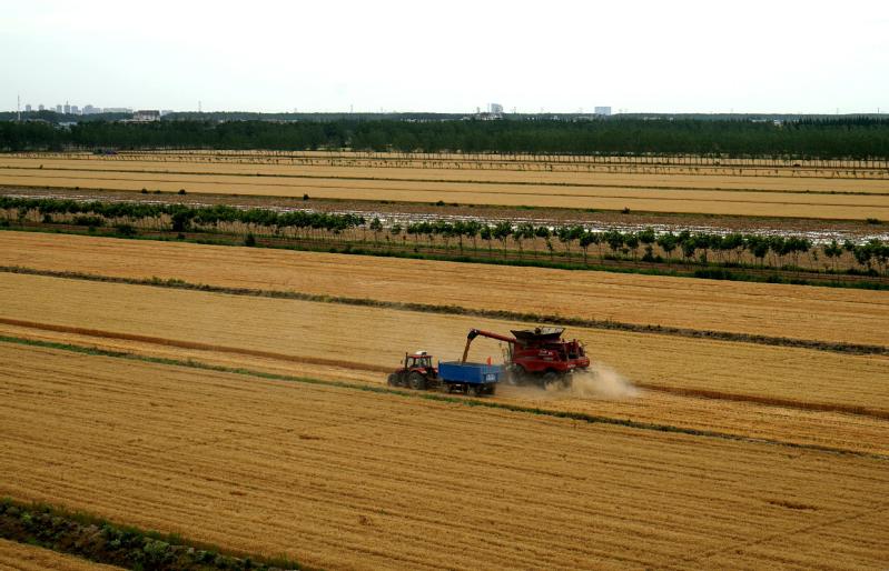 夜來南風起,小麥覆隴黃,新洋大地一片金黃,大型聯合收割機在金色的麥海中高歌,向人們報告豐收的喜訊,今年夏糧又是大豐收,畝產1200斤以上已成定局。