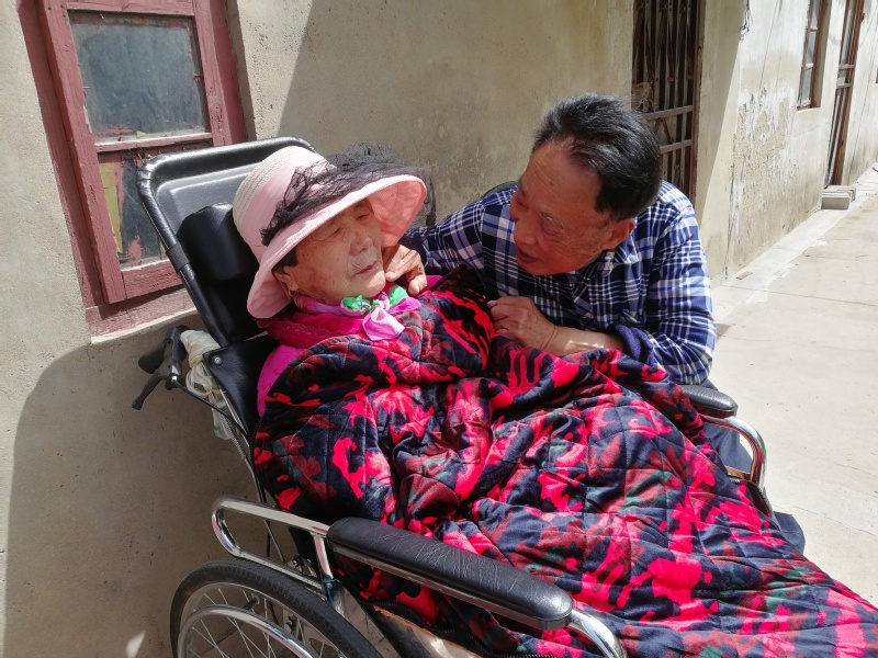 臥床3年的朱福和,從來沒有生過褥瘡。鄰居陳慧芹說:“每隔十天八天陰子明都將老伴穿戴整齊,抱到輪椅上推到院外透氣、曬太陽,街坊鄰居聚在一起聊天時,都夸贊陰子明將妻子服侍得好。”
