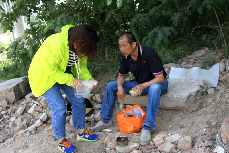 圖為農(nóng)機人員的賢內(nèi)助送飯到田頭