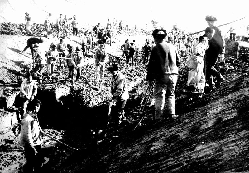 圖為當年興修水利挖河的鏡頭