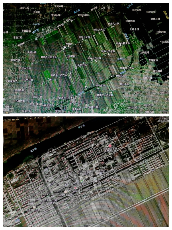 圖為北斗上拍攝的新洋農場全圖和新洋小鎮全圖