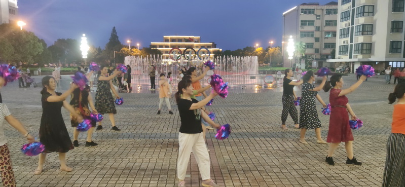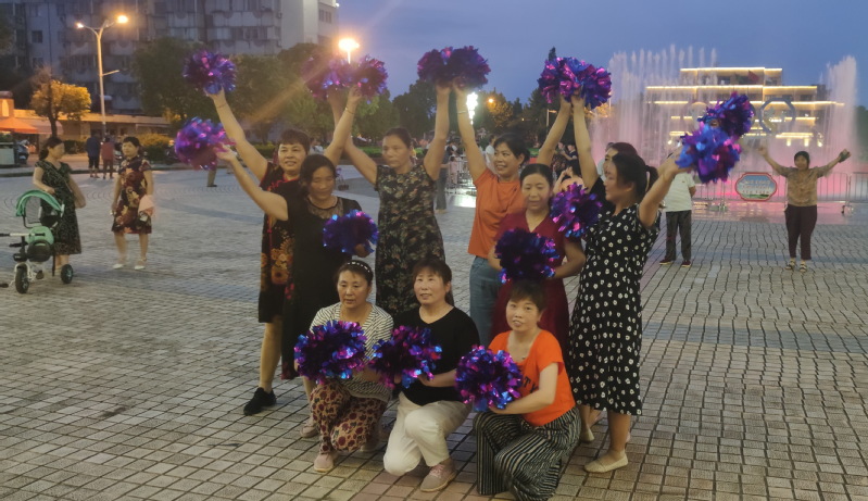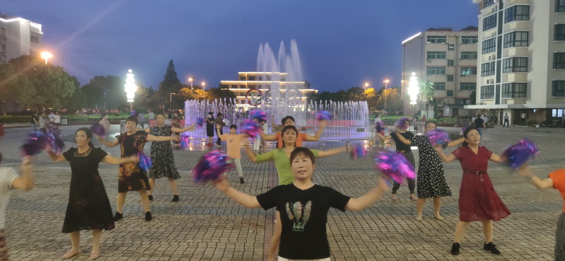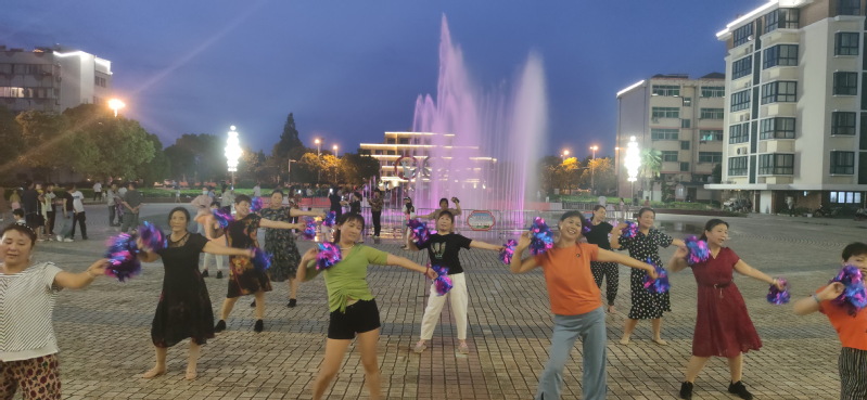 每天傍晚在淮海農場文化廣場上的音樂噴泉旁,活躍著兩支廣場舞表演隊伍,其中一支由12名退休女士組成的廣場舞蹈隊,他們在音樂的伴奏下,手持花簇 ,翩翩起舞。只見她們臉上洋溢著幸福的笑容,她們用舞姿描繪錦繡時代、暢想美好未來,她們也讓幸福的感覺在現場蔓延開來。也讓農場的大媽們在舞出自信,跳出風采中,展示好農場社區新一代職工居民的新形象。