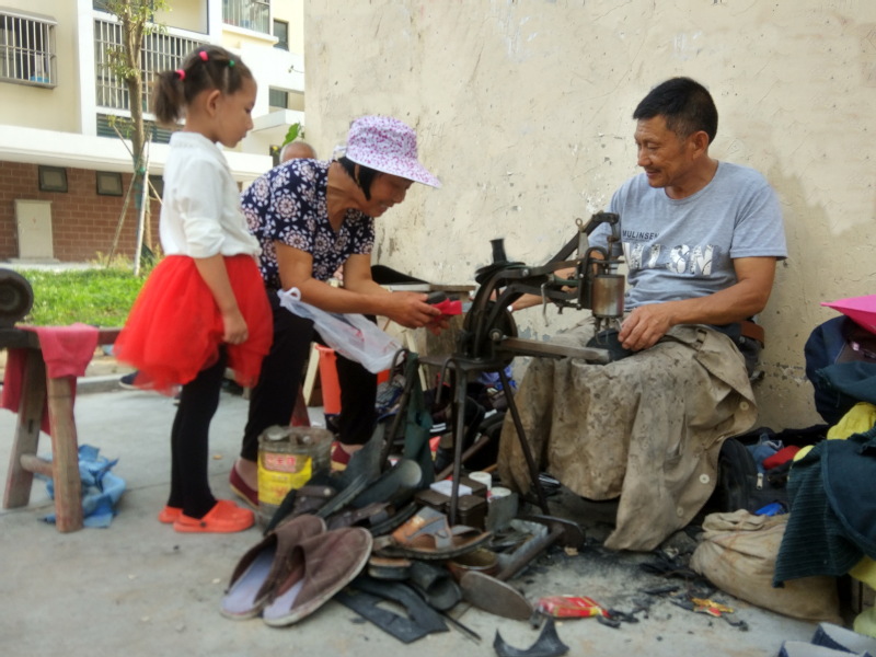 自1988年自謀職工設(shè)點修理鞋子以來,常年以平價為農(nóng)場職工居民提供服務(wù),解決了人們?yōu)獒橆^線腦而發(fā)愁的難題。人緣好的葛華,今年58歲,在這條巷口擺攤已經(jīng)30多年,在職工居民中形成了較高的口碑,所以他的修理攤前人氣也較高,時常聚集著過往的行人或是周邊的職工居民,人們也喜歡聚集在鞋攤前閑聊,這里成為人們休閑便民的熱鬧場所。