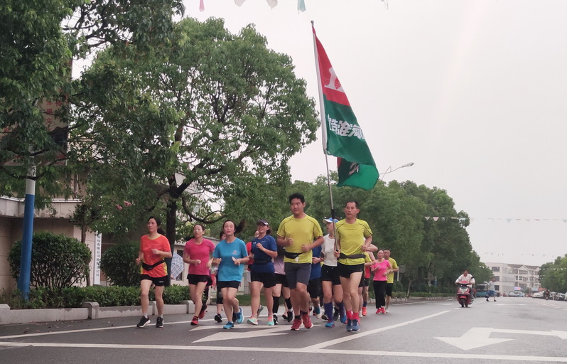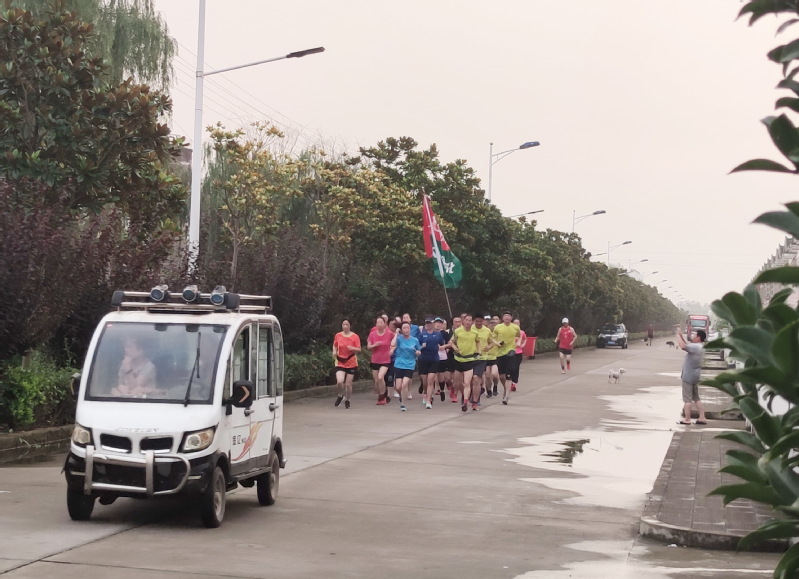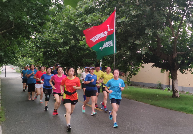 8月10日傍晚,在淮海農場場域內的道路上,一個20多人的馬拉松跑步方隊引起了農場職工居民的注意,大家紛紛側目,觀看著舉著“打造淮海健康文化”字體的淮海跑團標識旗幟在行進著,這一特殊的跑步方隊特別耀眼,成為農場一條亮麗的風景。