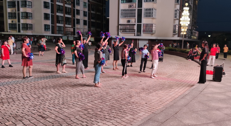 每天傍晚,淮海農(nóng)場文化廣場聚集著許多職工居民在這里健身跳舞,三個舞蹈方陣在音樂噴泉和廣場視頻節(jié)目的烘托下,在廣場的各個區(qū)域各展身姿,放飛自我,享受著“我運動、我健康、我快樂”的氛圍之中。目前6000平方米的文化廣場是農(nóng)場社區(qū)和周邊職工群眾文娛活動的主要場所,廣場周邊樓宇的輪廓燈顯示著氣派居住和生活環(huán)境,眾多職工居民的融入讓文化廣場更有人氣和特色,綠植錦簇,歡聲笑語,文化廣場成為了歡樂的海洋,美麗的廣場成了職工居民健康休閑娛樂的好去處,靚麗的文化廣場還讓許多職工居民帶著孩子在這里親子游玩,并在互動和拍照留念中享受著生活的美好。