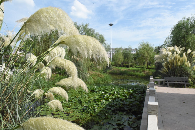 處署時(shí)節(jié),要入在淮海農(nóng)場淮海公園中什么最美麗,大家一定都把手指向了公園中到處綻放著花序的蒲葦了。烈日下站中公園的長廊下,享受著蔭涼的愜意,欣賞著遠(yuǎn)近開放的蒲葦草,此時(shí)的心情甭提有多開心了。雖然公園內(nèi)花卉開放的不是很多,但在綠色一片的植被中,那些置身于河邊、石旁、亭邊的那一簇簇高大的蒲葦草展現(xiàn)出來的,無數(shù)銀白色的大型圓錐花序,宛如素凈少女般婀娜多姿,清麗婉約中又顯風(fēng)情萬種。他們好像是在公園內(nèi)旁若無人般地肆意開放著,如花如景更如情,亭亭玉立地自成一景,又融入到周邊的綠植和造型的景觀里,讓在此流連的職工居民無不駐足觀賞,手機(jī)中留下它美麗的風(fēng)景。
