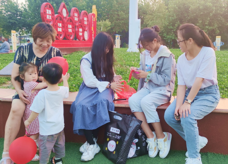 當(dāng)氣球飄蕩之時(shí),立即就有孩子奔跑到這些姐姐們的面前小心地觀看,還有的孩子拉著媽媽奶奶的手,來到這里看熱鬧,也想要一只屬于自己的氣球玩具。而來自學(xué)習(xí)的小姐姐們,對(duì)前來觀看的寶寶們都能滿足他們的愿望,在奉獻(xiàn)愛心的同時(shí),也收獲著快樂,并在與寶寶和其家人的交流中,鍛煉與社會(huì)各界的交際能力和自己的團(tuán)隊(duì)合作意識(shí),讓學(xué)生們過上了一個(gè)不一樣的社會(huì)交往實(shí)踐課。