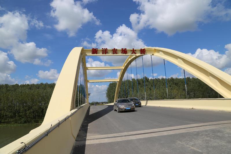 在迎接新中國成立71周年的喜慶日子里,射鹽線上橫跨在黃沙港上的“新洋農場大橋”正式亮相。