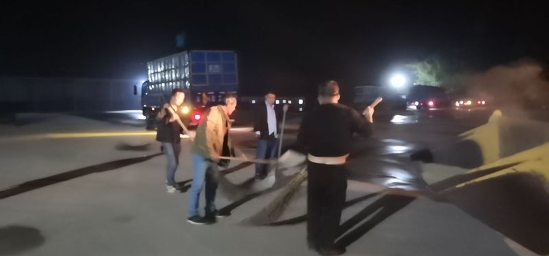 你掃、我鏟、他推,10月14日晚上8點,寶應湖分公司共和生產區的槽坊場頭依然機聲隆隆、燈光閃爍,七八位員工分工合作忙碌在夜色中,勾勒出一幅美麗的秋收剪影。