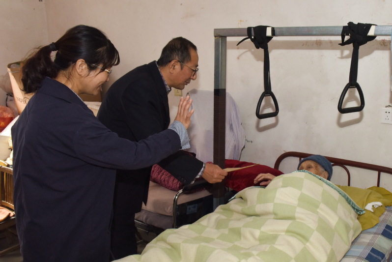 慰問人員還來到了農(nóng)場振興小區(qū),向居住在女兒家并癱瘓在床上的丁吉女表達(dá)了節(jié)日的問候,并遞上了慰問金。
