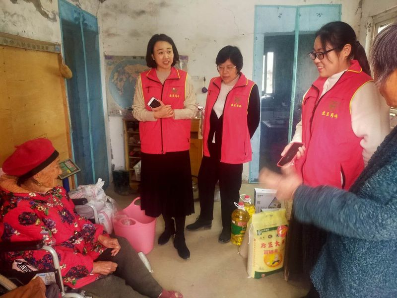 在王衛生產區郭云珍家中,志愿者們看到已經99歲高齡的郭云珍老人身體硬朗、思維清晰、精神矍鑠且能夠自理。巾幗志愿隊隊員在與老人親切交談,聊家常、談往事中,關切詢問老人的身體情況和生活狀況,“您是名副其實的長壽老人,是我們崗埠健康老人的代表,要注意保重身體,遇到困難及時向組織反映”,老人用微微顫抖的手拉著志愿者激動地說“現在不愁穿不愁吃,共產黨給了我今天美好的生活,這一切都要感謝共產黨!”說著眼角流出了激動的淚花。隨后志愿者們又到崗埠莊王發主家,石河莊賈漢成家,包莊王加英家,送去慰問,老人們都感言“現在日子越來越好過,如今的生活做夢也想不到,以前慰問是雪中送碳,現在是錦上添花!”