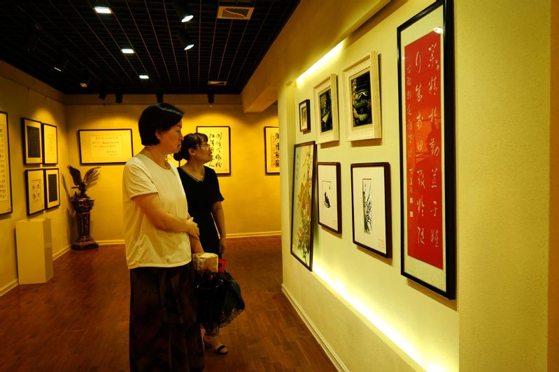書畫藝術(shù)廳展出的書畫作品形式多樣,風格各異,書法、國畫、篆刻等一應(yīng)俱全,就書法而言,真、草、隸、篆應(yīng)有盡有。作者上至90多歲的老先生、老奶奶,下到10度歲的小學(xué)生。在書畫藝術(shù)廳欣賞一幅幅作品分明就是一種藝術(shù)享受。