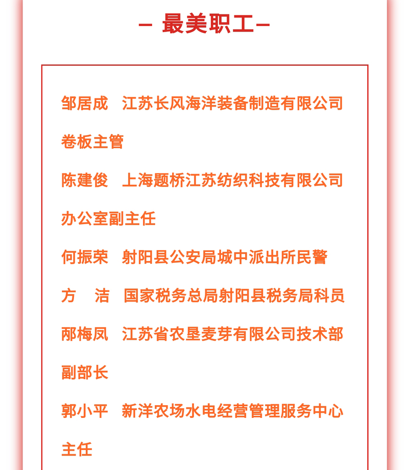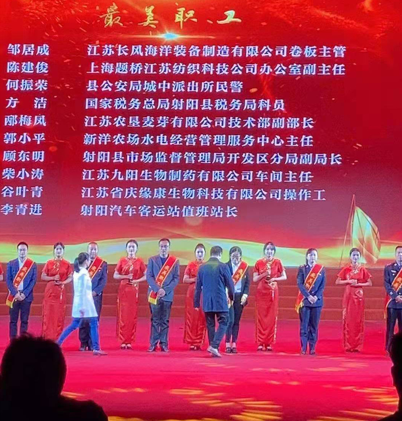 11月19日晚,射陽第十四屆丹頂鶴文化藝術(shù)節(jié)暨經(jīng)貿(mào)洽談會(huì)舉行第七屆“最美射陽人”評選揭曉活動(dòng)。活動(dòng)現(xiàn)場,表彰了“最美道德模范”“最美赤子”“最美創(chuàng)業(yè)精英”等十一大類先進(jìn)典型,農(nóng)場職工郭小平榮獲“最美職工”稱號,登臺(tái)接受表彰。