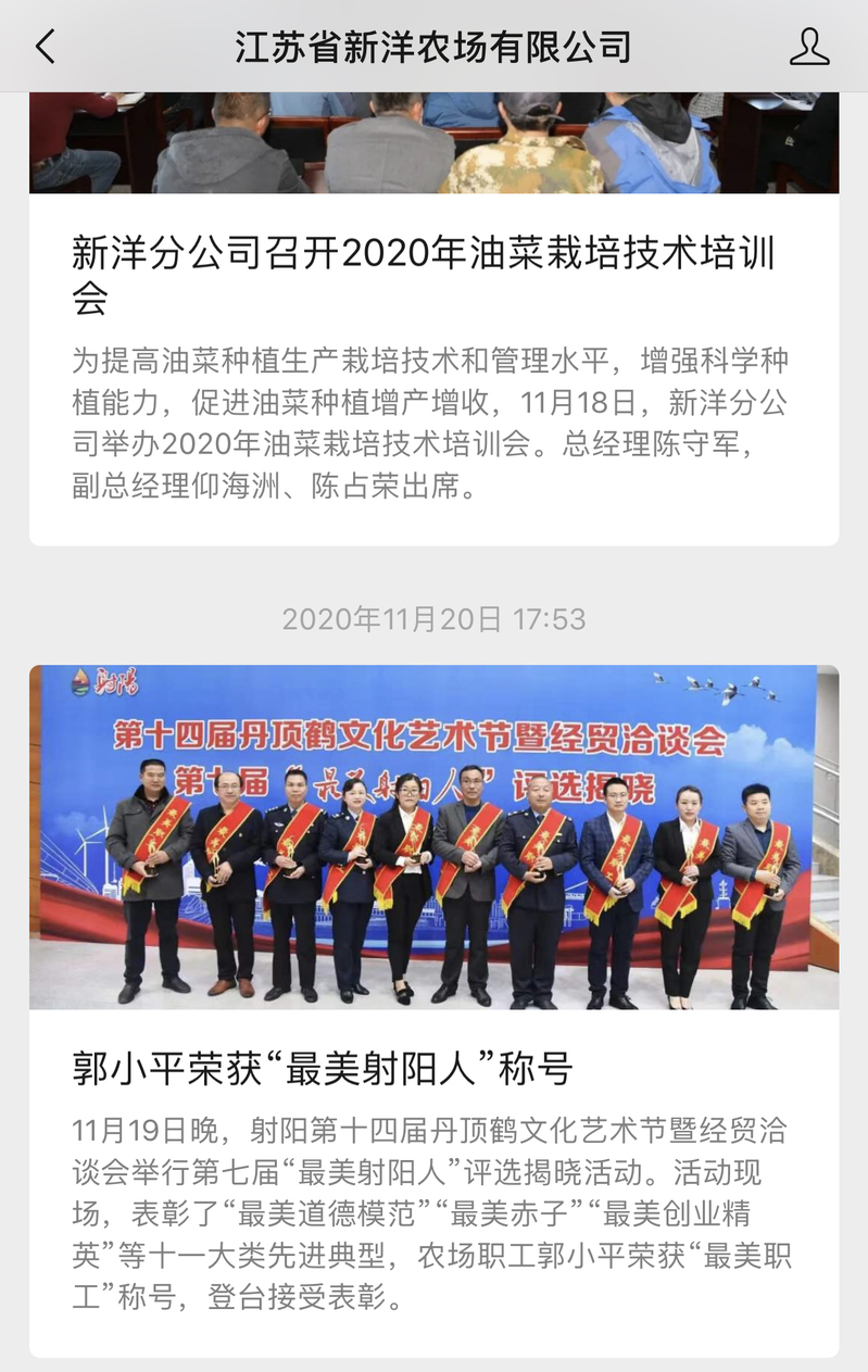 2016年初,農(nóng)場(chǎng)公司宣傳部門積極響應(yīng)集團(tuán)公司和農(nóng)場(chǎng)公司黨委號(hào)召,率先在墾區(qū)內(nèi)建立了第一批微信公眾號(hào),及時(shí)對(duì)公司權(quán)威信息、重大活動(dòng)進(jìn)行發(fā)布,讓廣大職工群眾能方便快捷地了解新洋的最新動(dòng)態(tài)。其后,公司宣傳部門積極搜集新洋的視頻、圖片、歷史事件記錄等資料,通過分類整理歸檔,在微信公眾號(hào)建立完善的信息資料庫(kù),對(duì)外進(jìn)行宣傳展示。及時(shí)刊登新洋的新聞資訊,幫助全場(chǎng)廣大干部職工及時(shí)掌握了解農(nóng)場(chǎng)的最新資訊,打造新洋農(nóng)場(chǎng)第一手新聞資訊平臺(tái)。