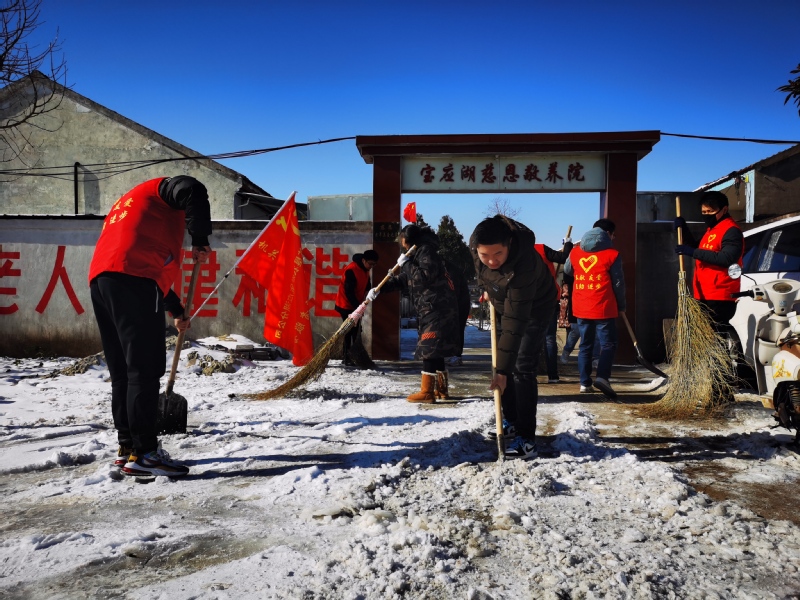 12月31日,寶應(yīng)湖農(nóng)場慈恩敬養(yǎng)院大門外,一群身著紅馬夾的志愿者揮舞著鐵鍬、掃帚,忙碌著清掃積雪,成為雪后初晴下的一道亮麗風(fēng)景。這是寶應(yīng)湖分公司機(jī)關(guān)黨支部組織志愿者開展志愿服務(wù)活動(dòng),弘揚(yáng)崇德向善精神。