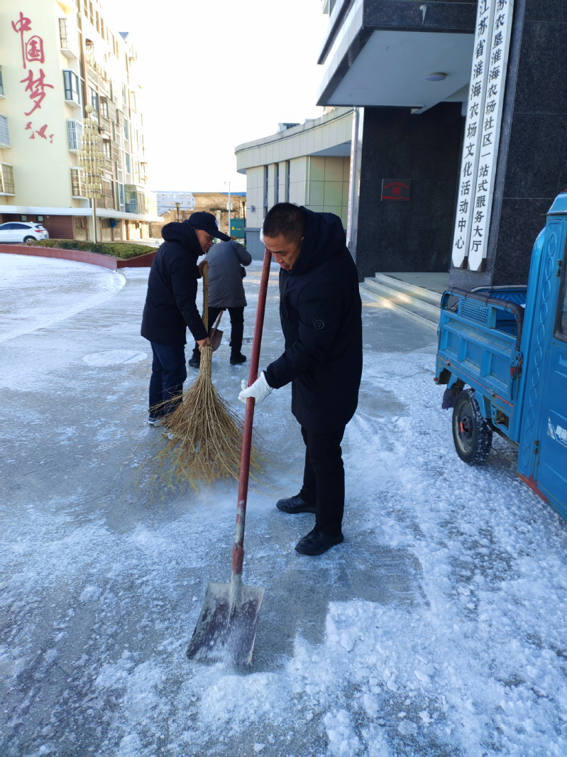 經過大家的默契配合和齊心協力,既暢通了進出社區服務大廳的路段,也保證了社區為民服務的形象,更為職工群眾清除了雪天出行時有可能帶來的安全隱患,同時也使農場的社區環境更加整潔有序。