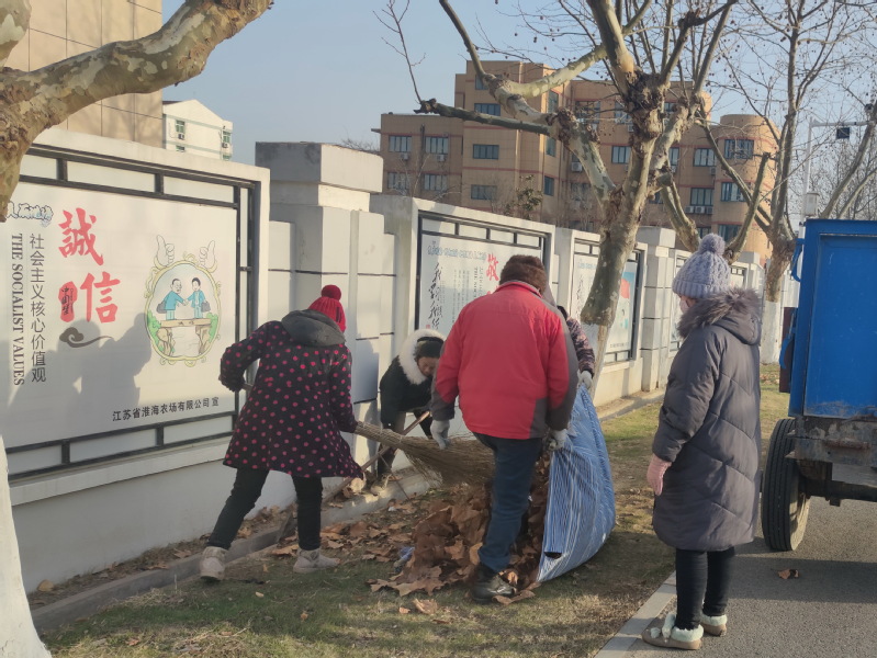 隨著傳統春節節日的來臨和新冠肺炎疫情的嚴峻形勢,淮海農場社區綠化環衛所組織10多名員工,沿著農場主要道路沿線開展了大規模的環境衛生大掃除活動,義務清掃農場主要干道上的因降溫而掉落的樹葉,進出道路溝坎及各排水溝道的衛生,通過清掃清除死角垃圾,保證排水暢通和環境清潔。