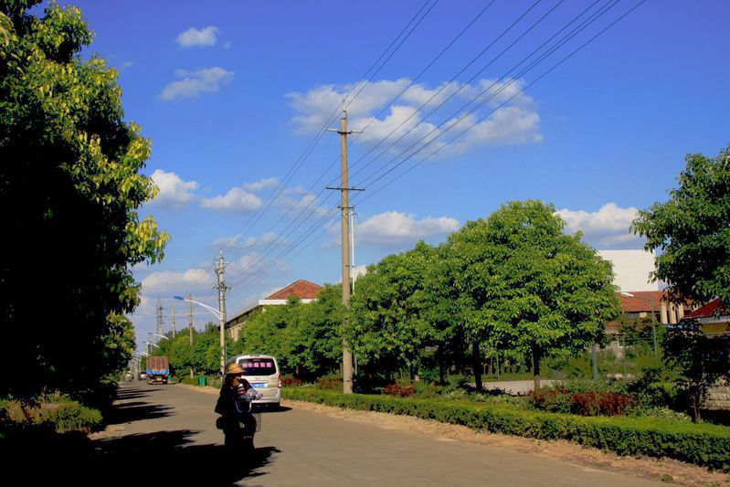 走進新洋,那一株株、一排排香樟樹猶如一位位、一隊隊迎賓女郎,亭亭玉立,甜甜微笑,迎接南來北往的朋友。微風(fēng)中,那沙沙的樹葉聲,分明是在喃喃細語,道一聲“歡迎您!”抑或是在低聲吟唱,輕詠著《迎賓曲》。