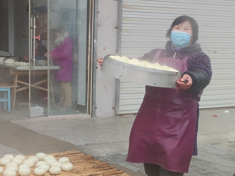 今年60歲的賈長梅是淮海農(nóng)場淮海路15號樓的居民,以前她和丈夫是濱海縣振東鄉(xiāng)人,后來到農(nóng)場以外包工的身份種田,隨著農(nóng)場對農(nóng)業(yè)生產(chǎn)的整合和股份制經(jīng)營,她的丈夫就替農(nóng)場管理農(nóng)田,來謀取打工管理的收入,加上平時愛好在十邊隙地種植,日子還過得較好。而賈長梅平時也經(jīng)常在外做些幫工的活,夫妻倆利用勤勞的雙手,日子過得也是苦中有甜。夫妻倆在這樣的背景下,最終他們在農(nóng)場小城鎮(zhèn)中買了樓房,還購買了門面房,以至于每年她就利用春節(jié)到來的時節(jié),通過手藝來為集聚到農(nóng)場小城鎮(zhèn)中發(fā)展的廣大職工居民提供春節(jié)前蒸饅頭包包子的服務(wù),此舉受到了因住上樓房或家中不便蒸饅頭的眾鄉(xiāng)鄰的歡迎。