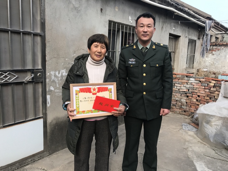 近日,淮海農(nóng)場(chǎng)人武部干事董偉、社區(qū)服務(wù)科副科長(zhǎng)崔慧慧等有關(guān)人員,為在部隊(duì)榮立三等功的現(xiàn)役軍人家庭送去立功喜報(bào)、慰問金和農(nóng)場(chǎng)黨委的親切問候。