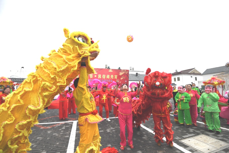 據悉,當天舉辦的正月十五“網絡中國節,民俗鬧元宵”活動中,來自臨海鎮內外眾多的志愿者服務隊們,分別表演了舞龍、舞獅、踩高蹺、跑早驢、挑花擔、蕩湖船、腰鼓舞、長扇舞以及舞蹈、快板等10多個豐富多彩的文藝節目。同時活動還邀請了臨海鎮的農民畫非遺文化傳承人王復軍現場繪制、展示農民畫作品;通過黨史知識搶答活動,引導大家學黨史、悟思想、聚人心、開新局,以優異成績迎接建黨一百周年活動的高潮。圖為現場活動時的場景。
