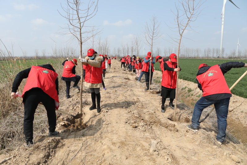 志愿者們也紛紛加入,在大家的分工協(xié)作、齊心協(xié)力下,歷時2個小時植樹3000余棵,9大隊、11大隊、13大隊防風林帶新栽種的樹苗亭亭玉立,在春風的吹拂下煥發(fā)出盎然生機,構成了一道靚麗的風景線。