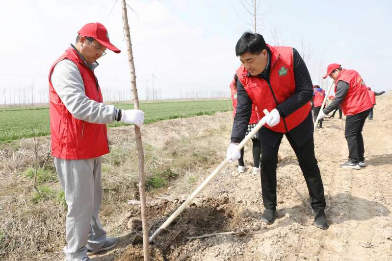 在植樹活動現(xiàn)場,領導班子成員充分發(fā)揚“老黃牛”精神,率先拿起鐵鍬埋頭苦干,正苗、培土、踩實……,每道工序都做得認真細致。