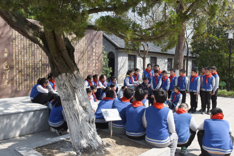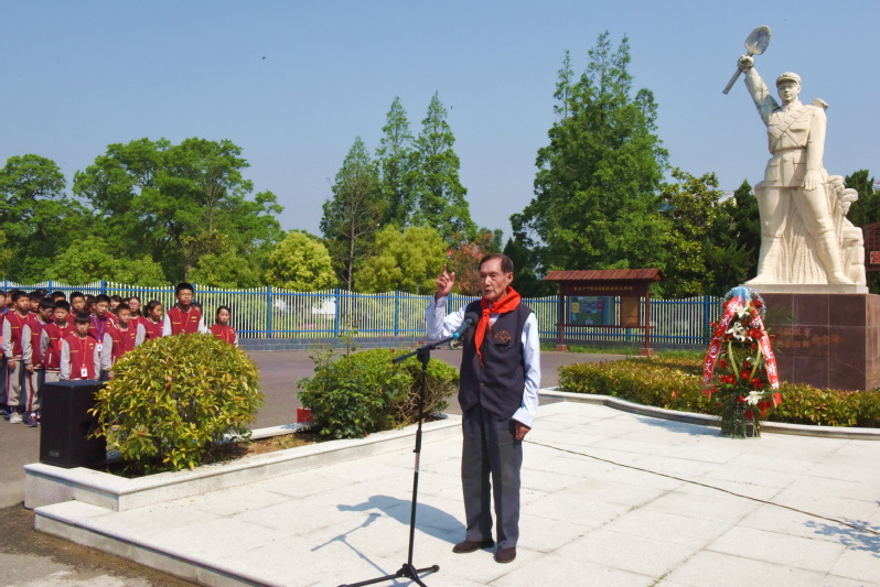 “我們給學(xué)生們就是要多講講過去黨的歷史,多說說農(nóng)場的建場史,讓他們在實境教育和感悟中,提升思想境界,從而接過淮海人的接力棒,一棒一棒向下傳,確保農(nóng)場的事業(yè)后繼有人。”胡福生表示。圖為胡福生老人在給學(xué)生們講傳統(tǒng)時的鏡頭。