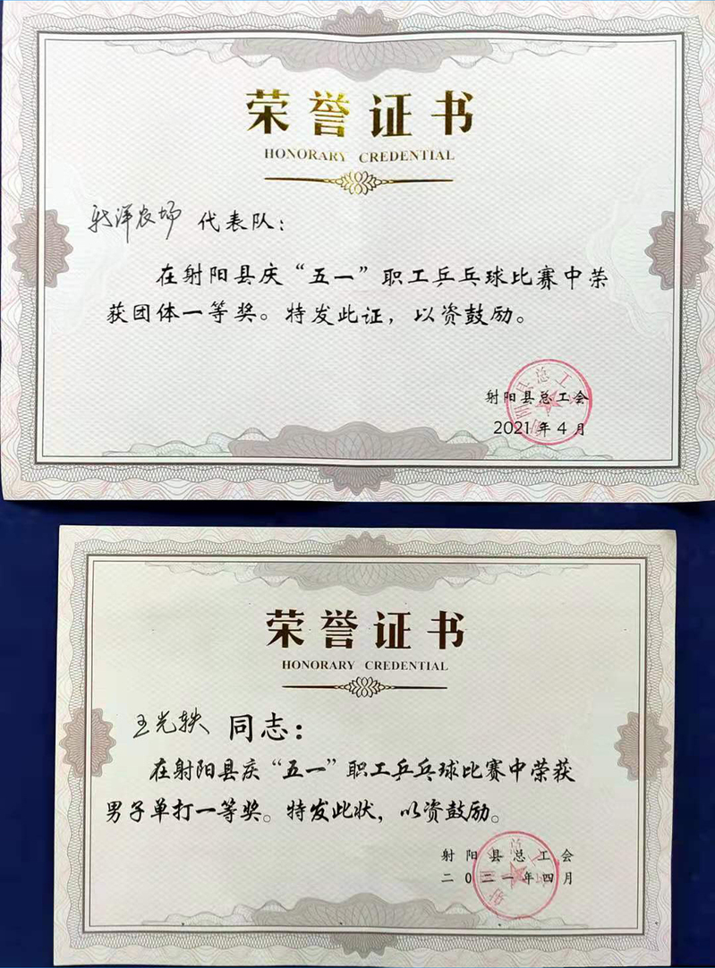 4月23日至24日,射陽縣總工會舉辦“迎五一·慶祝建黨100周年”職工乒乓球比賽。經(jīng)過兩天激烈角逐,新洋農(nóng)場有限公司代表隊選派的四位選手敢打敢拼,一路過關斬將,最終取得了團體第一名的好成績。新洋代表隊的王光軼選手同時斬獲了男子單人賽第一名的好成績。