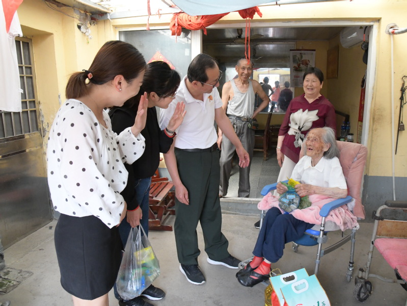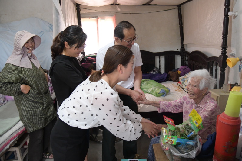 在端午節(jié)來(lái)臨之際,為讓百歲老人過上一個(gè)快樂詳和的傳統(tǒng)佳節(jié),6月11日下午,淮海農(nóng)場(chǎng)有限公司工會(huì)與社區(qū)民政負(fù)責(zé)人一起,帶著粽子、大米、葵花籽油等生活用品,分別慰問了今年已有102歲的張瑞瑞和邱維珍老人,并向她們致以節(jié)日的問候。