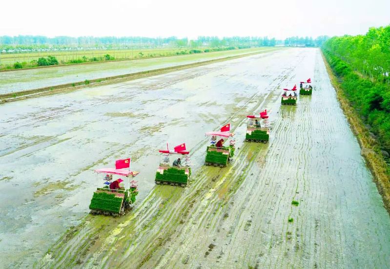 100多臺插秧機奔忙在田間,功夫不負有心人,新洋分公司終于按質按時完成了插秧任務,向建黨100周年獻上了一份厚禮。