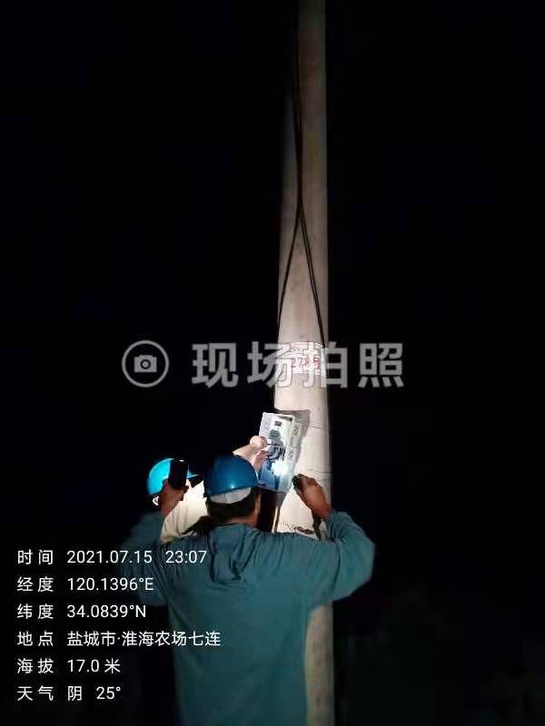 “顧經(jīng)理,你好!八大隊西瓜地中的一根電線桿傾斜得越來越厲害,風雨也越來越大,請你們趕快來處理。”7月15日晚8時許,射陽縣凱惠電力公司(原淮海供電公司)經(jīng)理顧青萬手機就傳來二分場社區(qū)主任翟學厚傳來急促的聲音,10千伏和400伏雙層線電桿因大風、暴雨造成了嚴重的傾斜。