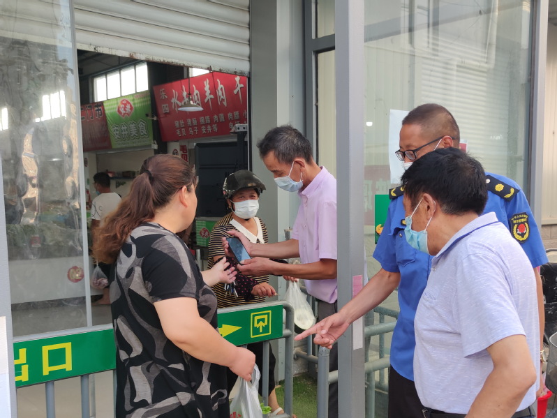 “還請你輸入下密碼。”說著,曹習生將手機遞到了買菜的居民手中。整個過程僅幾分鐘光景,就化解了居民沒戴口罩進出菜市場的難題。