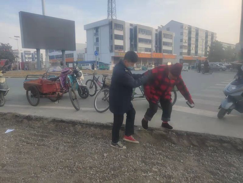 12月8日,在三河農場的街道出現了一幅暖心的畫面,一位買菜的老人站在路邊的陡坡上,想跨過高低落差有近30公分的臺階,由于老人年歲已大,行動不便,幾次都想邁腳下去都未成功。這時,正在巡街的三河城管隊員看到此情景后,立刻跑到老人的身邊,攙扶老人下臺階,暖心的畫面贏得了在場職工居民的一致稱贊。