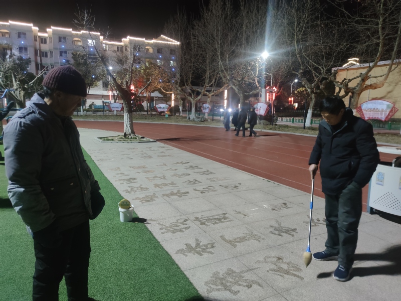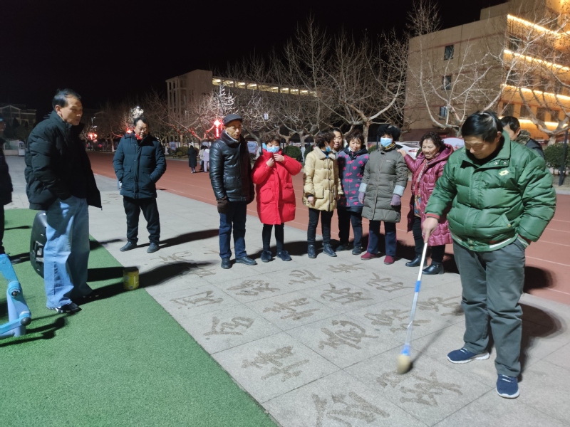 說起寫“地書”的好處,田海燕說,他每天晚上都要在廣場上、公園里或是路道邊練習一個多小時,這樣既有利于保健養生,也有利于益智養性,在回憶名人詩詞和偉人風采中,展現博大精深的中華文化,也得到了眾多觀看者的稱頌,這可謂是一舉多得。