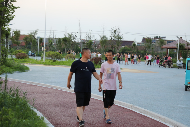 廣場舞臺上的愜意。每天傍晚6:30分,文化廣場都會傳出一陣陣歡快的音樂聲,伴隨著音樂的節(jié)奏,近百人舞動的身姿吸引著不少人跟著跳動比劃。自文化廣場建成后,農(nóng)場公司特地在百姓大舞臺廣場安裝了接電裝置,為職工居民跳廣場舞提供方便,舞臺南側(cè)的高桿燈光明亮,舞者們的臉上洋溢著幸福的微笑。廣場建成后,退休職工黃淑英主動當(dāng)起了廣場舞的老師,每天領(lǐng)著大家一起跳操跳舞健身,一支百余人的廣場舞隊(duì)每天活躍在文化廣場,帶動了更多的職工居民加入到跳舞健身的行列。黃淑英說:每晚跳舞健身后的大汗淋漓舒服極了,不僅使全身都得到了活動和放松,增強(qiáng)了體質(zhì),還增進(jìn)了大家之間的感情。