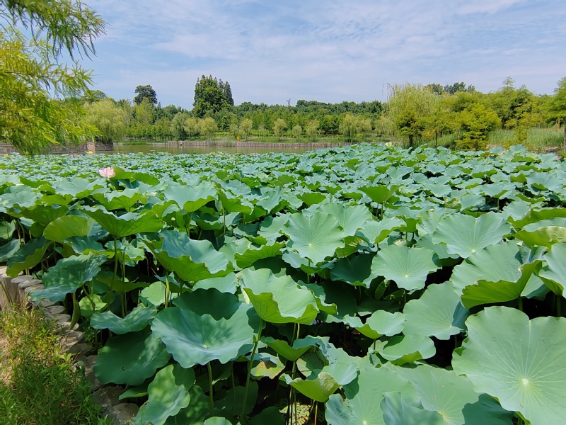隨著氣溫持續升高,公園內的荷花競相開放,荷葉碧翠欲滴,展現了一副接天蓮葉無窮碧,映日荷花別樣紅的魅力畫卷,讓人感受到一絲絲涼意。周邊居民陳先生說:“有了荷花,這里的夏天更加漂亮了”。湖邊是垂柳依依,隨風浮動。荷葉一個接著一個鋪了滿塘,有的盛著晶瑩剔透的水珠,不禁想起小時候不懂事,會把荷葉折下來,拿在手中轉圈圈。