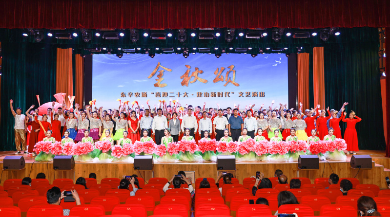 金秋九月,秋高氣爽。為慶祝中華人民共和國(guó)成立73周年,喜迎黨的二十大勝利召開(kāi),9月29日下午,東辛舉辦“金秋頌·喜迎二十大 建功新時(shí)代”文藝演出。東辛黨委書(shū)記、董事長(zhǎng)韓中書(shū)、副總經(jīng)理陳躍武、紀(jì)委書(shū)記王芹、副總經(jīng)理戴祥、蘇墾農(nóng)發(fā)東辛分公司副總經(jīng)理王加樹(shù)、陳寬兵等領(lǐng)導(dǎo)出席。
