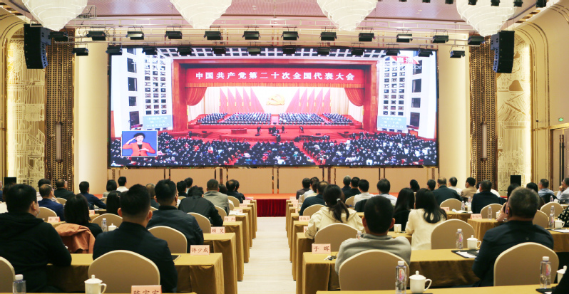 新曹農場公司組織全體黨員干部、管理人員和鹽城市黨代表、東臺市黨代表、人大代表、政協委員以及駐場單位負責人等集中收看黨的二十大開幕會。與會人員全神貫注聆聽習近平總書記所作的報告,會場秩序井然,學習氛圍濃厚。