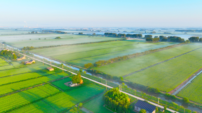 晨光下的稻田與村落