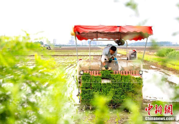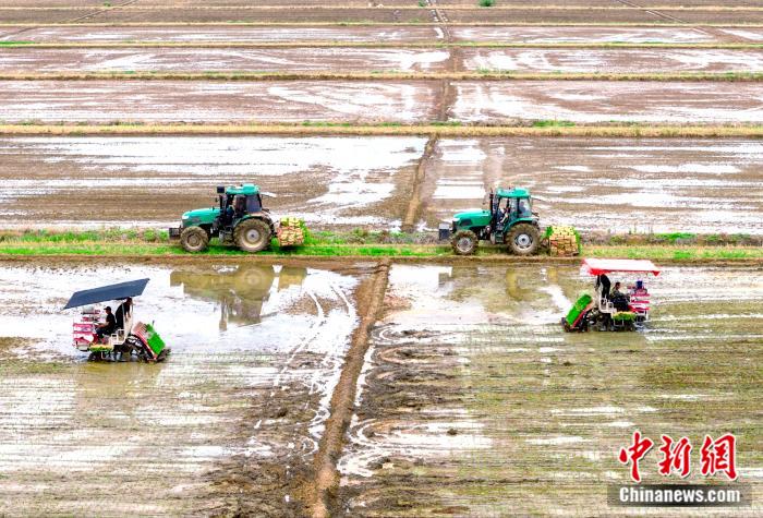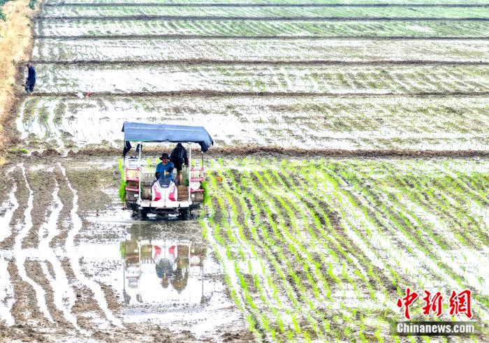 6月11日,江蘇省盱眙縣三河農(nóng)場,農(nóng)民正在進(jìn)行機(jī)插秧作業(yè)。據(jù)了解,三河農(nóng)場2025年水稻種植面積4.1萬畝,機(jī)插秧比例達(dá)到96-97%,機(jī)插秧不誤農(nóng)時(shí),比往年半人工插秧普遍縮短3~5天時(shí)間。 圖/CNSphoto 許昌銀 攝