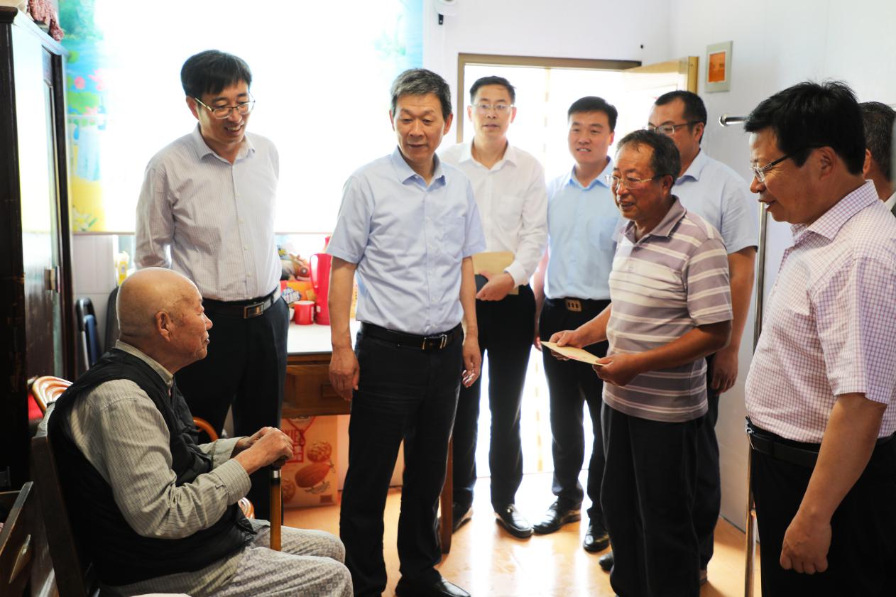 6月23日上午,集團公司黨委委員、副總經(jīng)理姜建友一行到崗埠走訪慰問部分困難黨員,為他們送去集團公司黨委的關懷和溫暖。農(nóng)場公司黨委主要領導陪同。姜建友一行先后來到老黨員包加能、許守喬、朱同寶的家中,他們都有50年以上的黨齡,每到一家都與大家親切交談,詳細詢問他們的健康狀況、日常生活等情況,并親手給他們戴上“光榮在黨50年”紀念章,送上慰問金和慰問品。當?shù)弥幽軈⒓舆^“抗美援朝”時,姜建友對老人表示崇高的敬意,他說:“老黨員是黨和國家的寶貴財富,在喜迎建黨百年的重要時刻,更要讓他們切實感受到黨組織的關懷和溫暖”。姜建友充分肯定農(nóng)場公司黨委開展“我為職工居民辦實事”實踐活動的成效,要求農(nóng)場公司黨委要解決焦點堵點難點問題,繼續(xù)推動黨史學習教育走深走實,引領職工群眾聽黨話、感黨恩、跟黨走,以實際行動奮進新時代、擔當新使命、展現(xiàn)新作為。