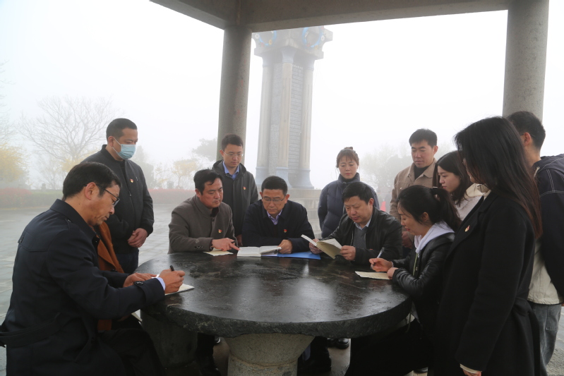 在八路軍著名抗日將領符竹庭墓前,大家在志愿者的介紹中了解符竹庭將軍戎馬一生、為國為民的光輝事跡。隨后,一行人莊嚴肅穆,全體默哀1分鐘,以表達對革命先烈最崇高的敬意和最深刻的懷念。支部黨員為革命英烈敬獻花籃,全體黨員向紀念碑三鞠躬,并面向黨旗重溫入黨誓詞。