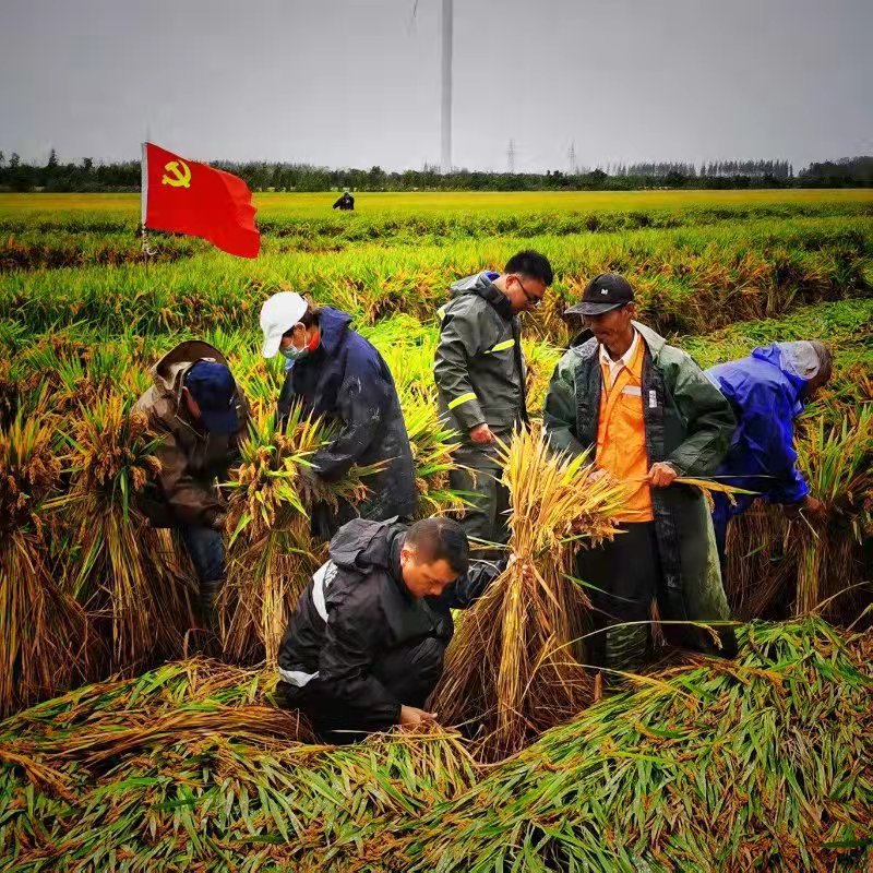 “兩人一組,順著水稻倒伏的方向,一人扶稻,一人綁扎,成一字型向前推進……”黨委成員身先士卒,一早便到達倒伏田塊,與黨員們一起“捆扎綁”,在實際操作中,總結出了一套既能保證抗風防倒,又能提高工作效率的方法。