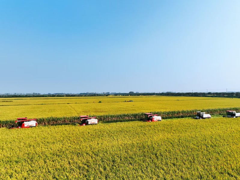 “開(kāi)鐮了!豐收了!”10月17日上午10時(shí),一臺(tái)臺(tái)聯(lián)合收割機(jī)駛向蘇墾農(nóng)發(fā)新洋分公司新北生產(chǎn)區(qū)5大隊(duì),金黃的水稻被大型機(jī)械收入“囊”中,新洋5.3萬(wàn)畝水稻機(jī)收作業(yè)正式拉開(kāi)序幕。今年“三秋”是集團(tuán)公司第二次黨代會(huì)勝利召開(kāi)后的第一個(gè)農(nóng)忙,做好“三秋”工作意義重大,黨委班子成員靠前指揮,深入田間查看水稻收割情況。稻田接連成片,稻穗迎風(fēng)擺動(dòng),收割機(jī)馬力全開(kāi)、縱橫馳騁,收割、脫粒、裝車(chē)……一氣呵成,一派豐收的喜人景象。收割現(xiàn)場(chǎng),蘇墾農(nóng)發(fā)新洋分公司嚴(yán)格收割質(zhì)量監(jiān)督,把機(jī)械減損作為糧食增產(chǎn)的重點(diǎn),加大收割質(zhì)量檢查力度,減少收割損失,實(shí)現(xiàn)秋糧顆粒歸倉(cāng)。“我們密切關(guān)注天氣情況和水稻成熟度,統(tǒng)籌安排,堅(jiān)持質(zhì)量第一,進(jìn)度第二,努力做到成熟一塊收割一塊,穩(wěn)步推進(jìn)收割進(jìn)度。”農(nóng)業(yè)中心負(fù)責(zé)人介紹。蘇墾農(nóng)發(fā)新洋分公司立足“前期‘揀’收、中期‘穩(wěn)’收、后期‘搶’收”的原則,充分利用秋收早期溫度高,有利晾曬、烘干的條件,適時(shí)收、曬、烘,為秋播及時(shí)騰茬,確保11月6日前完成秋播田塊收割任務(wù)。面對(duì)不穩(wěn)定天氣因素,蘇墾農(nóng)發(fā)新洋分公司強(qiáng)化機(jī)械保障,本部準(zhǔn)備收割機(jī)58臺(tái)套,運(yùn)糧車(chē)53臺(tái),另調(diào)度好26臺(tái)小型履帶式收割機(jī),隨時(shí)應(yīng)對(duì)突發(fā)